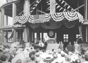 Roosevelt remarked, “May this permanent home of the Federal Trade Commission stand for all time as a symbol of the purpose of the government to insist on a greater application of the golden rule to conduct the corporation and business enterprises in their relationship to the body politic.” Listen to FDR’s speech.