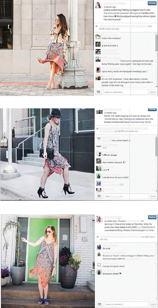 Lord & Taylor gave the dress to 50 influencers and paid them between $1,000 and $4,000 to post photos of themselves in the dress on Instagram on one specified “product bomb” weekend in March 2015 – the same weekend when Nylon posted its Lord & Taylor-approved photo. Style the dress any way you like, Lord & Taylor told the influencers, but in other aspects, the contract was all business. The influencers had to: 1) use the @lordandtaylor Instagram user designation and the campaign hashtag #DesignLab in the photo caption; and 2) tag the photo @lordandtaylor.