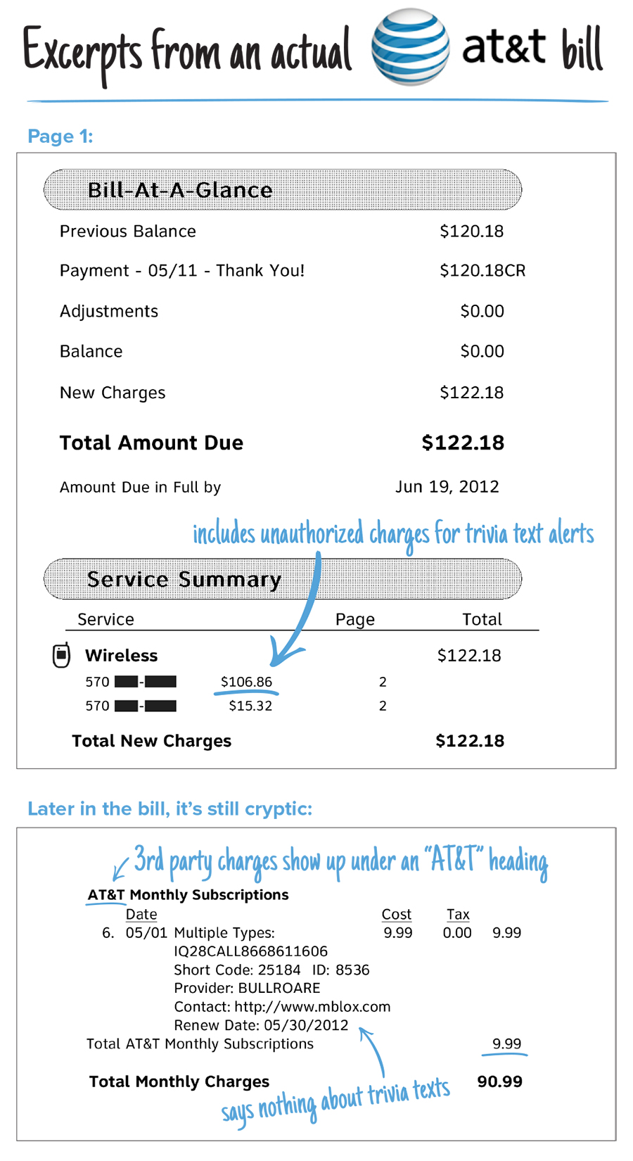 Extractos de un AT&T ley de atiborrar los cargos. (Haga clic para ver tamaño completo)