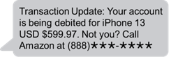 Like fake bank texts, texts from someone who says they’re “Amazon” look like automated fraud prevention messages. Often, they ask you to verify a big-ticket order you didn’t make. If you call the number in the text, you get a phony Amazon rep who offers to “fix” your account. People often report giving the rep remote access to their phone so they can get things fixed and get their refund.[9] But then the rep says a couple of zeros were accidently added to the refund, so they need you to return that money to them – often by buying gift cards and giving the cards’ PIN numbers.