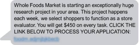 Promises of easy money for mystery shopping at well-known stores like Whole Foods and Walmart are an old scammer favorite. Reports about bogus offers to make money driving around with your car wrapped in ads are also common. Reports show job scammers also target people who post their resumes to employment websites like Indeed. In most of these reports, scammers use checks that seem to “clear” but turn out to be fake to trick people into sending them money.[8]