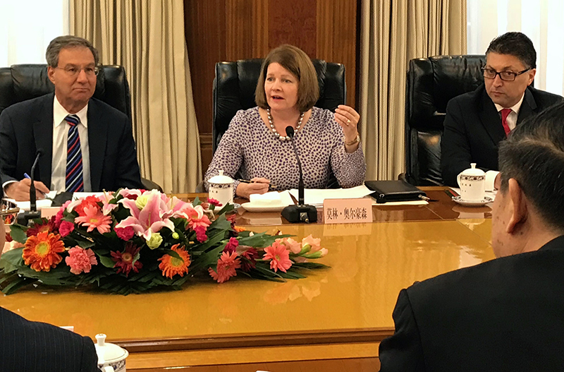Federal Trade Commission Acting Chairman Maureen K. Ohlhausen, and Assistant Attorney General Makan Delrahim of the U.S. Department of Justice’s Antitrust Division, participated today in high level bilateral meetings with officials responsible for China’s three anti-monopoly agencies. From the National Development and Reform Commission (NDRC), Vice Chairman Hu Zucai and Director General Zhang Handong. From the Ministry of Commerce (MOFCOM), Assistant Minister Li Chenggang and Director General Wu Zhenguo. And from the State Administration for Industry and Commerce (SAIC), Vice Minister Wang Jiangping and Director General Yang Hongcan. NDRC Chairman He Lifeng welcomed Acting Chairman Ohlhausen and AAG Delrahim to NDRC before the meetings.