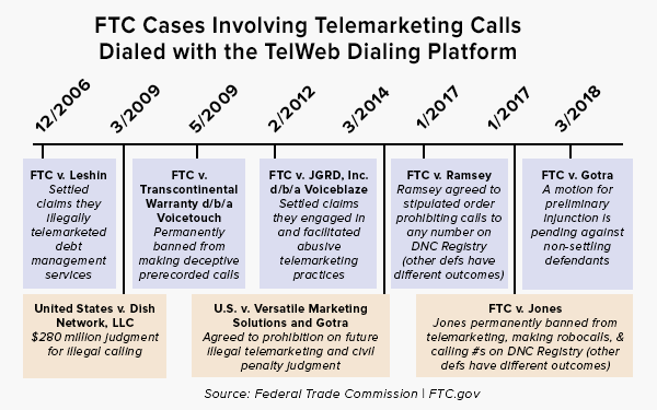 The FTC charged the defendants with violating the agency’s Telemarketing Sales Rule (TSR). Virtually all telemarketing robocalls to consumers are illegal under the TSR.
